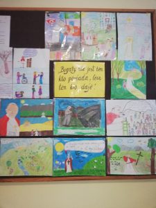 Rok 2020 dobiega końca. Ze względu na 100-lecie urodzin Jana Pawła II stał się szczególny. W październiku została przygotowana ekspozycja prac uczniów naszej szkoły, którzy tworzyli piękne prace związane z bohaterem konkursu szkolnego, realizowanego w ramach zajęć plastycznych. Wystawa uświetnia korytarz drugiego piętra i parteru, niestety, nie mamy możliwości oglądać jej na co dzień.